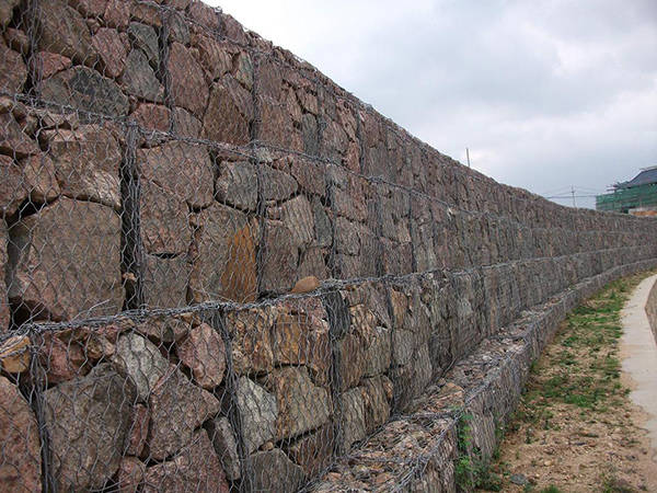 石籠網(wǎng)由高不腐蝕、高強(qiáng)度、具有延展性的低碳鋼絲或者包覆PVC的以上鋼絲使用機(jī)械編織而成,使用該網(wǎng)制作而成的箱型結(jié)構(gòu)就是石籠。根據(jù)ASTM和EN標(biāo)準(zhǔn),所使用的低碳鋼絲直徑根據(jù)工程設(shè)計(jì)要求而不同。一般介于2.0-4.0mm之間,石籠網(wǎng)鋼絲的抗拉強(qiáng)度不少于38kg/m2,金屬鍍層重量一般高于245g/m2,石籠網(wǎng)片的邊緣線直徑一般要大于網(wǎng)線直徑。其雙線絞合部分的長度不得小于50mm.以保證絞合部分鋼絲的金屬鍍層和PVC鍍層不受破壞。