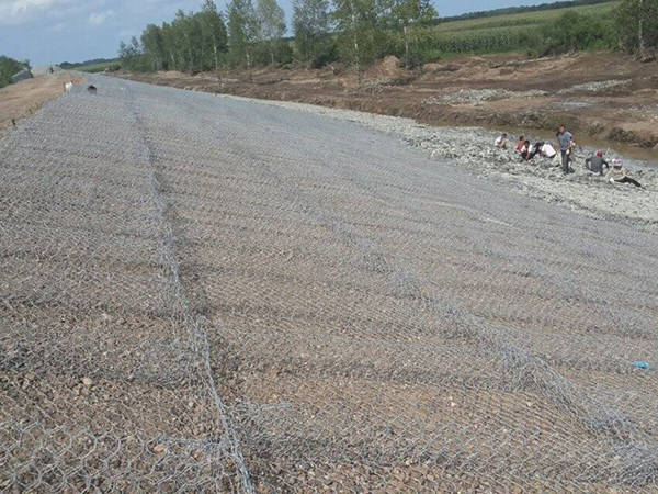 雷諾護墊也叫石籠護墊,格賓護墊,是指由機編雙絞合六邊形金屬網(wǎng)面構(gòu)成的厚度遠小于長度和寬度的墊形工程構(gòu)件。雷諾護墊中裝入塊石等填充料后連接成一體,成為主要用于水利堤防、岸坡等的防沖刷結(jié)構(gòu),具有柔性、對地基適應(yīng)性的優(yōu)點。
